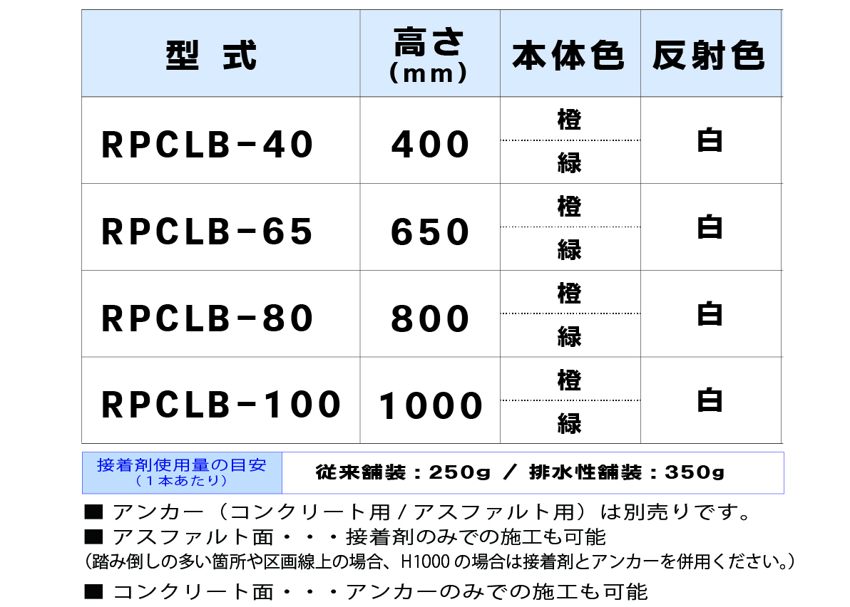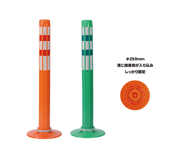 区画線や縁石に収まる130mm幅タイプ。これまでの200mmでははみ出してしまっていた箇所にもスリムに収まります。施工条件に合わせて2種類のアンカーも用意。接着剤との併用でより効果的に施工ができます。